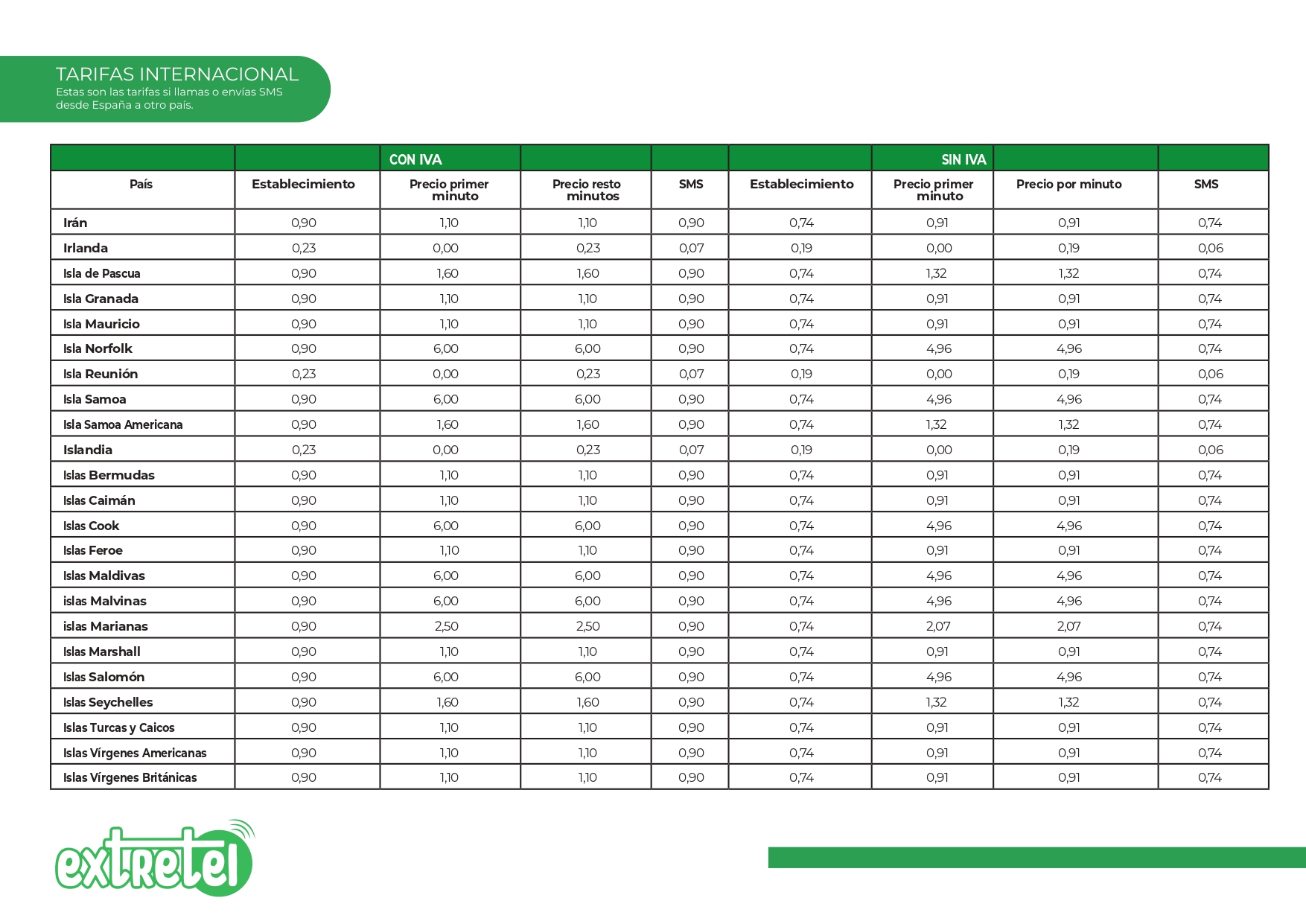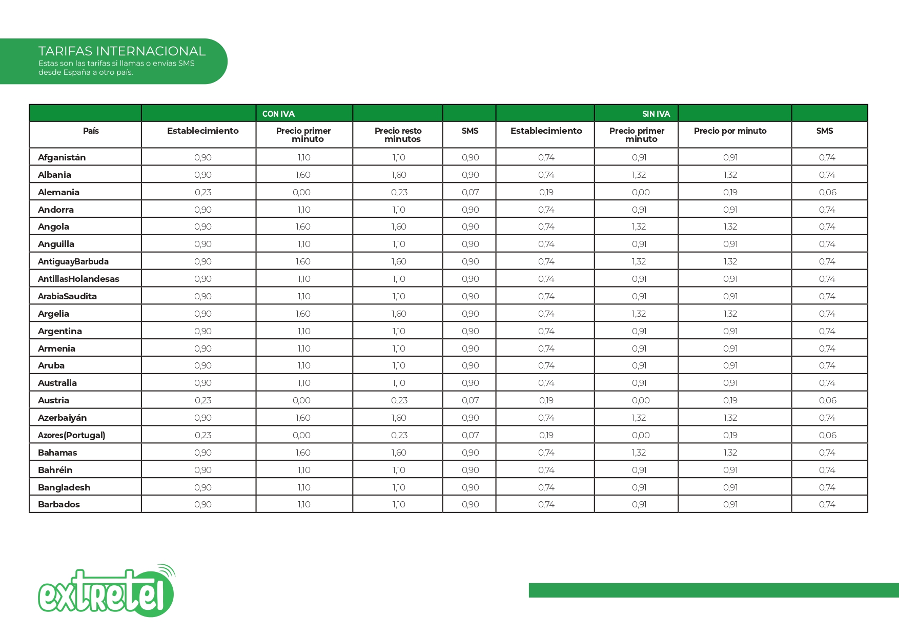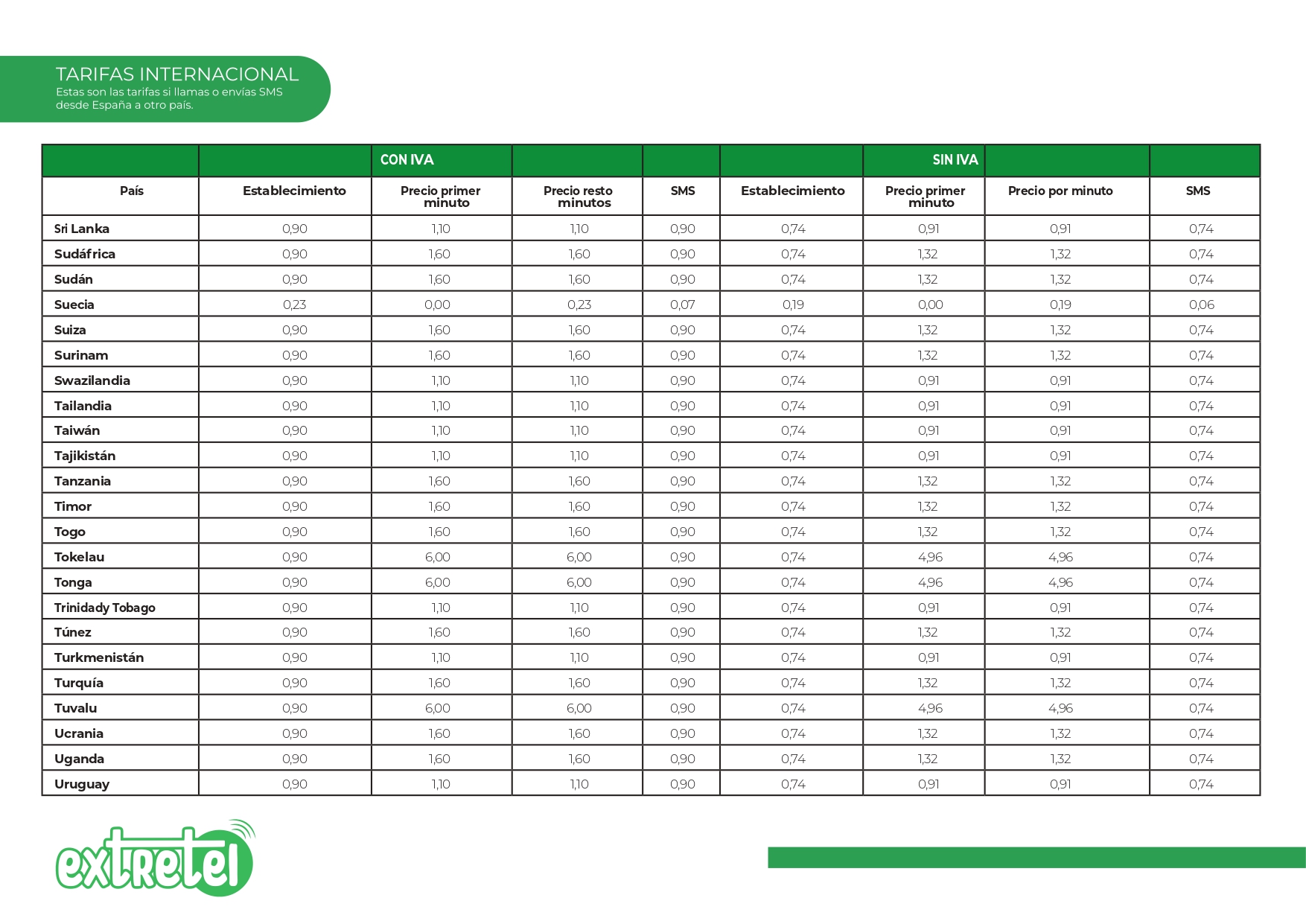 Tarifas internacionales