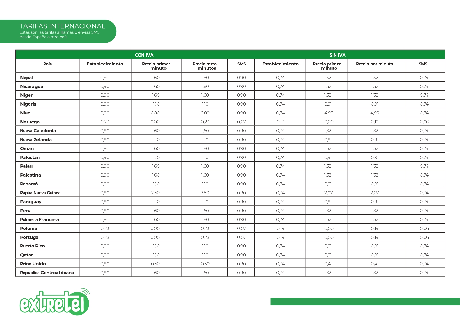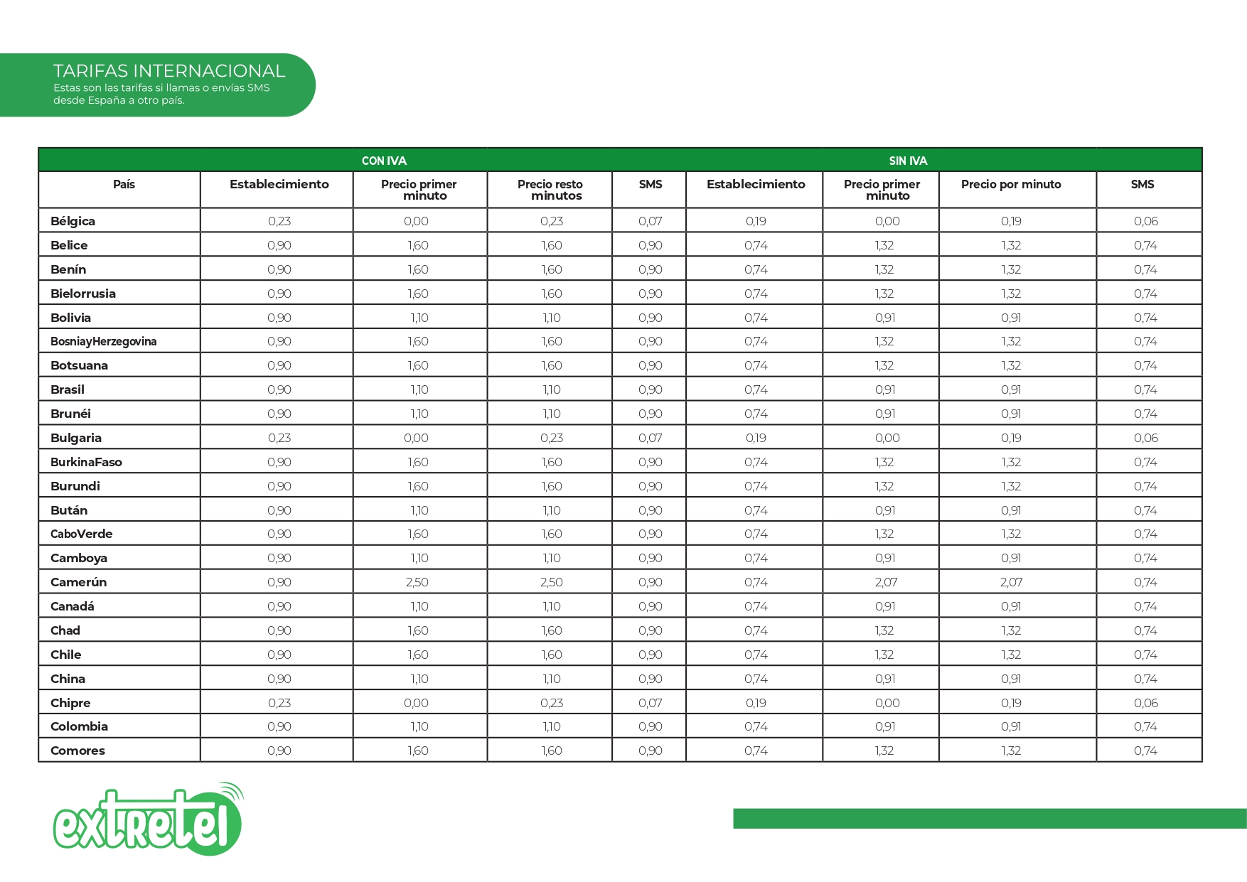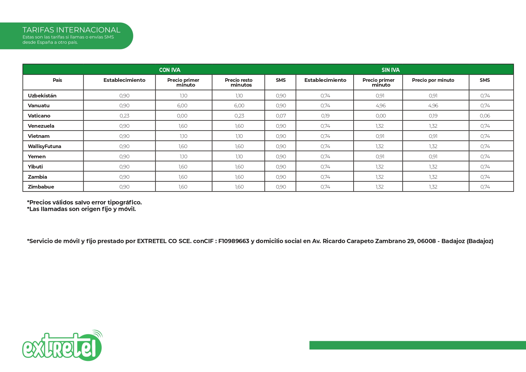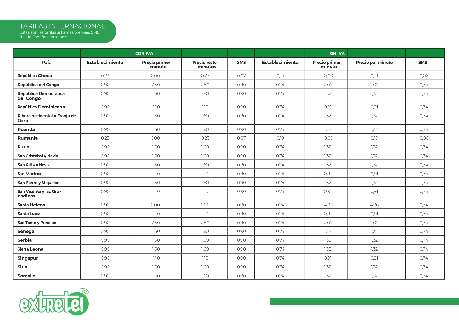 Tarifas internacionales